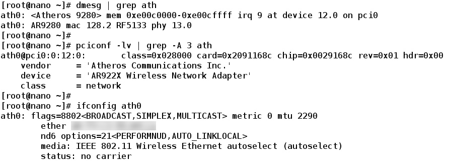 logger_syslog=255 # ignored? logger_syslog_level=1 interface=wlan0 bridge=bridge0 # ignored dump_file=/var/run/hostapd.dump # ignored ctrl_interface=/var/run/hostapd ctrl_interface_group=wheel ssid=We_can_hear_you_screwing country_code=DE # ignored ieee80211d=1 # ignored hw_mode=g # ignored channel=2:nht/40+ # ignored wmm_enabled=1 # ieee80211n=1 # error wpa=3 wpa_passphrase=supersecret wpa_key_mgmt=WPA-PSK wpa_pairwise=CCMPRelated rc.conf snippet: